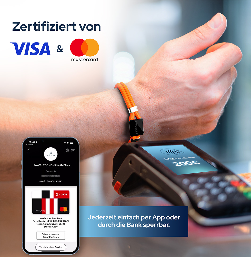 Build your own Bezahlarmband mit PAYCELET ONE. Bezahlen Sie sicher kontaktlos immer und überall, wo kontaktlos bezahlt werden kann.