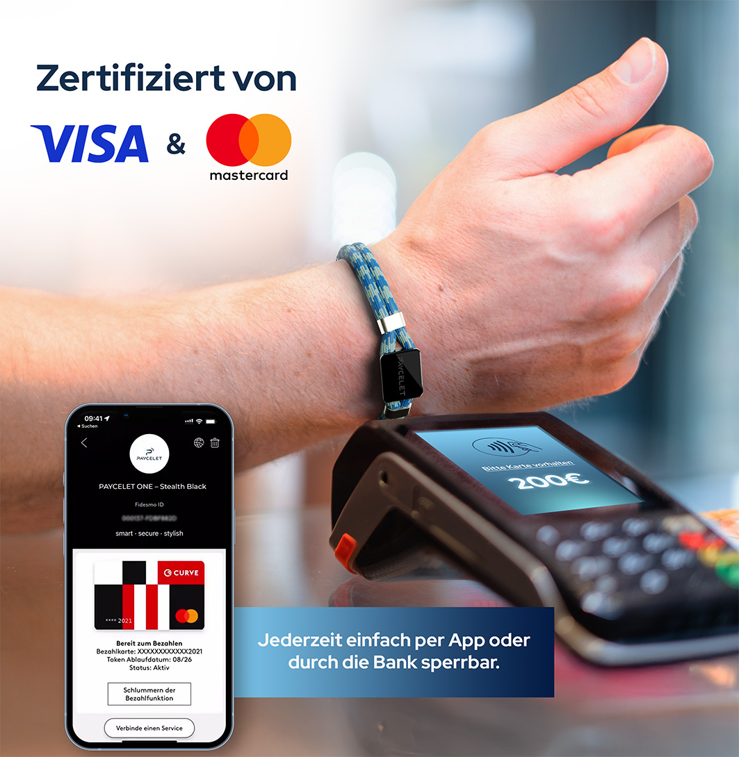 Build your own Bezahlarmband mit PAYCELET ONE. Bezahlen Sie sicher kontaktlos immer und überall, wo kontaktlos bezahlt werden kann.